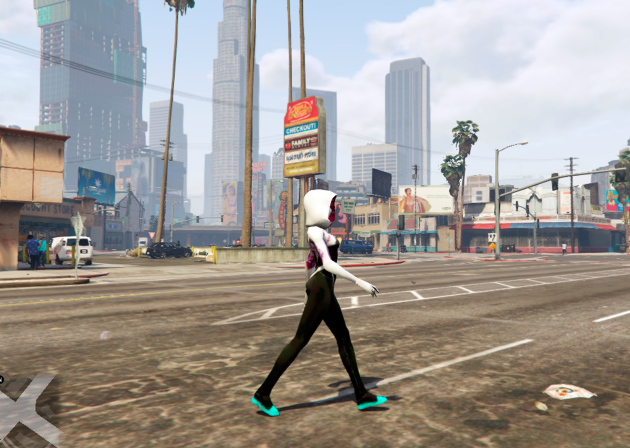 Мод изменяет скин главного персонажа игры GTA V, на Spider Gwen.