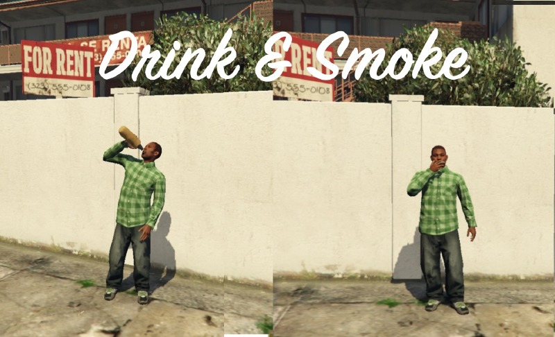 Drink & Smoke – данный мод позволит персонажу одиночного режима GTA 5, в любой пить и курить.